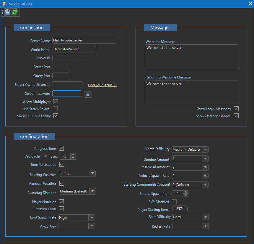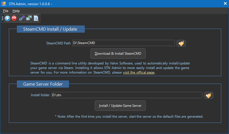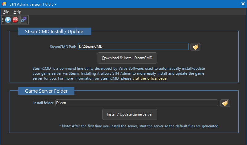 STN Admin is designed to give you a graphic user interface to the game configuration options, as well as provide functionality that doesn't exist or can be difficult to use, such as server backups, viewing online players, installing/updating the server and much more.